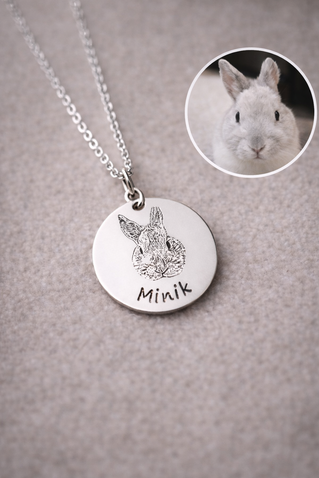 À partir de votre photo, nous gravons avec précision le portrait de votre compagnon sur une médaille ronde en acier, pour créer un souvenir sobre, élégant et chargé d’émotion.